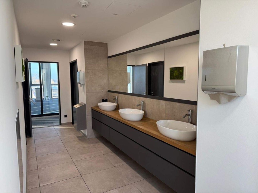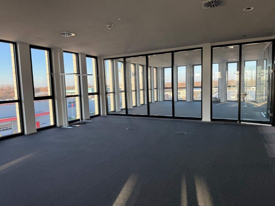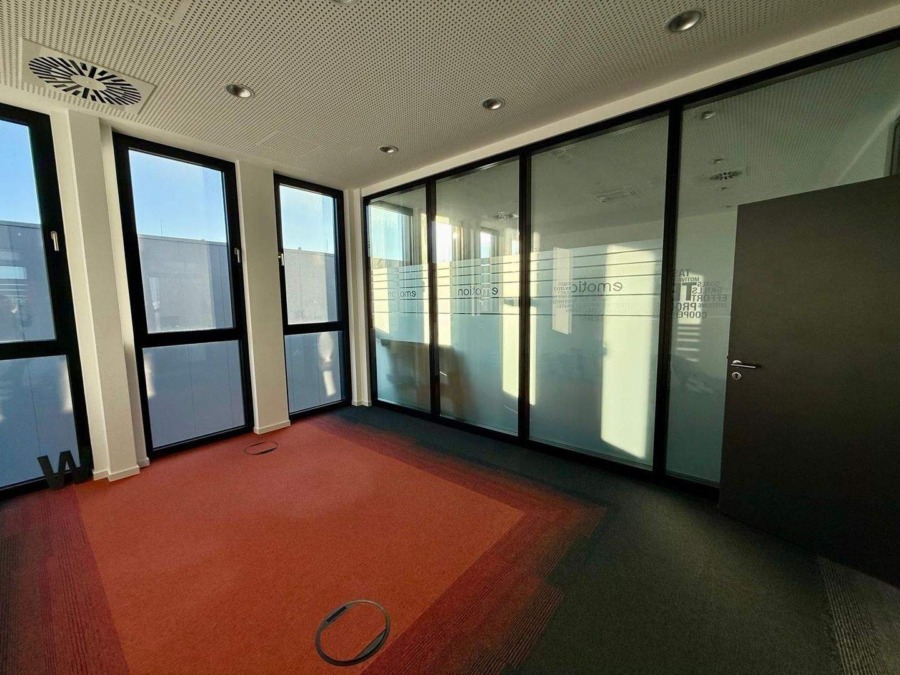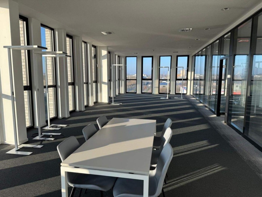 Diese neuwertige und hochwertig ausgestattete Bürofläche befindet sich im 3. Obergeschoss eines modernen Gebäudes und überzeugt durch ein repräsentatives, zeitgemäßes Design. Mit einer Gesamtfläche von ca. 428 m² bietet sie ideale Bedingungen für effizientes und angenehmes Arbeiten.