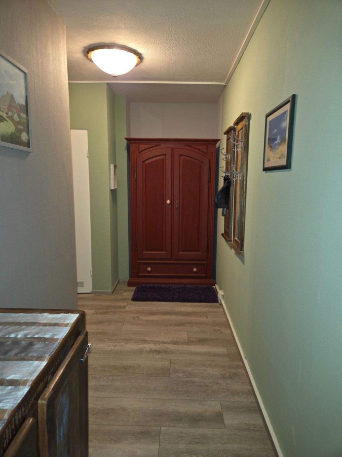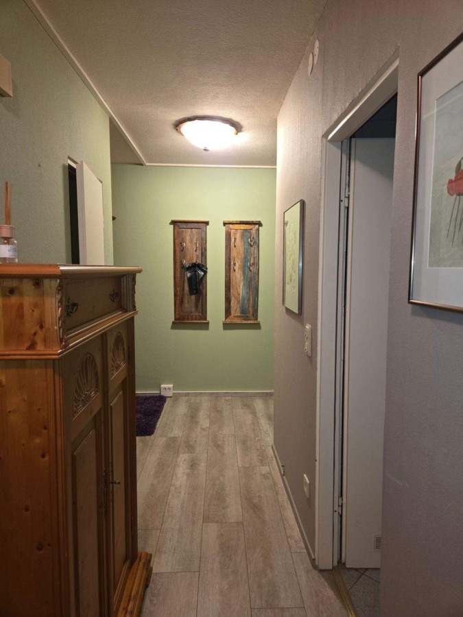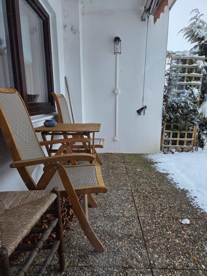 Möblierte Eigentumswohnung mit großem Wohnzimmer und Südterrasse. und separater Küche. Das Fensterelement wurde erneuert und bietet einen zusätzlichen Eingang über die Terrassentür.
