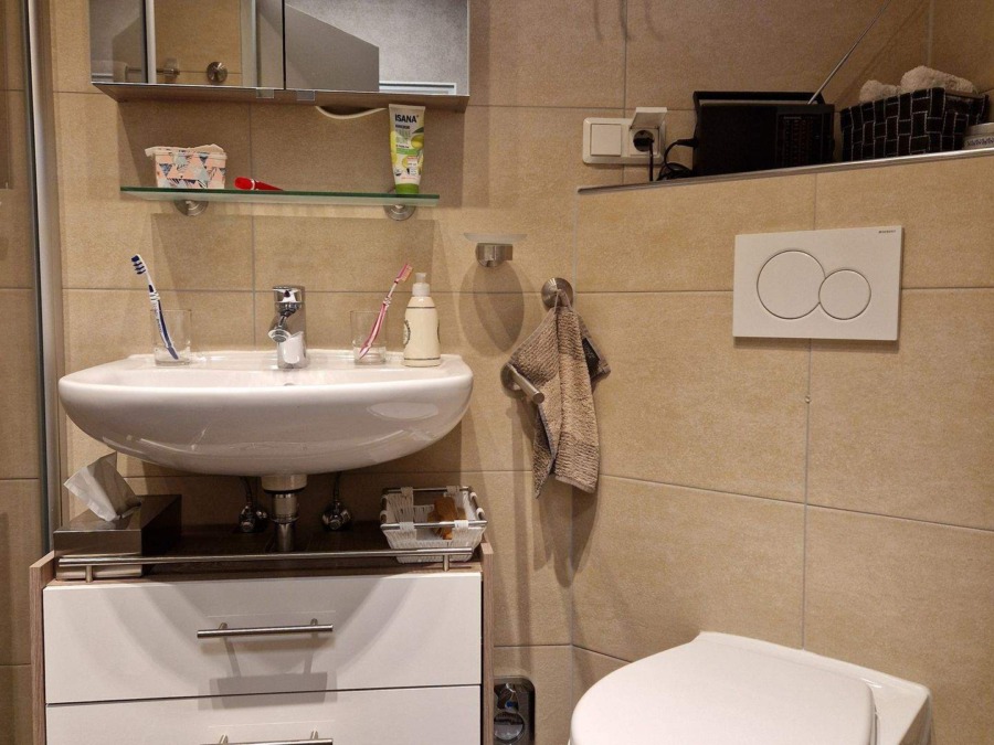 Flur, Bad u. Küche mit Fenster, Wohn- u. Schlafraum, Terrasse mit el. Rolläden.