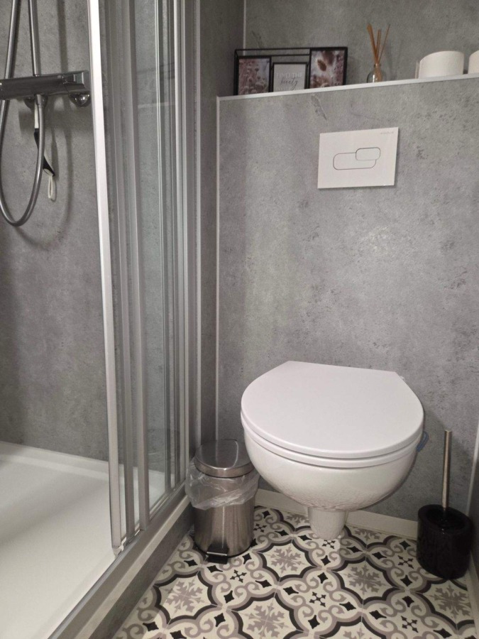 Renovierte Ferienwohnung modern möbliert mit zwei Schlafräumen und Balkon zur Westseite. Fenster und Heizkörper wurden erneuert, die Fußböden sind mit Laminat ausgelegt. Die Strangsanierung ist in der Wohnung bereits abgeschlossen, das Bad wurde in dem Zug renoviert.