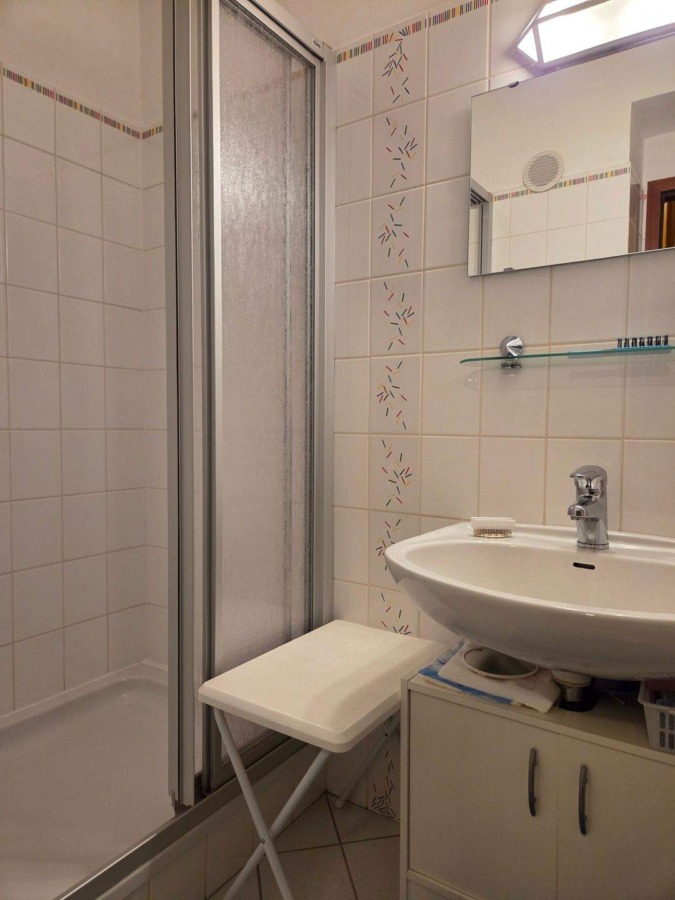 Die Wohnung ist freundlich möbliert, sie kann als Ferienwohnung vermietet oder selbst genutzt werden. Fenster und Heizkörper wurden erneuert. Das Hausgeld beinhaltet 65,- € Rücklagenzuführung und 279,- € WEG-Kredit für die Strangsanierung.